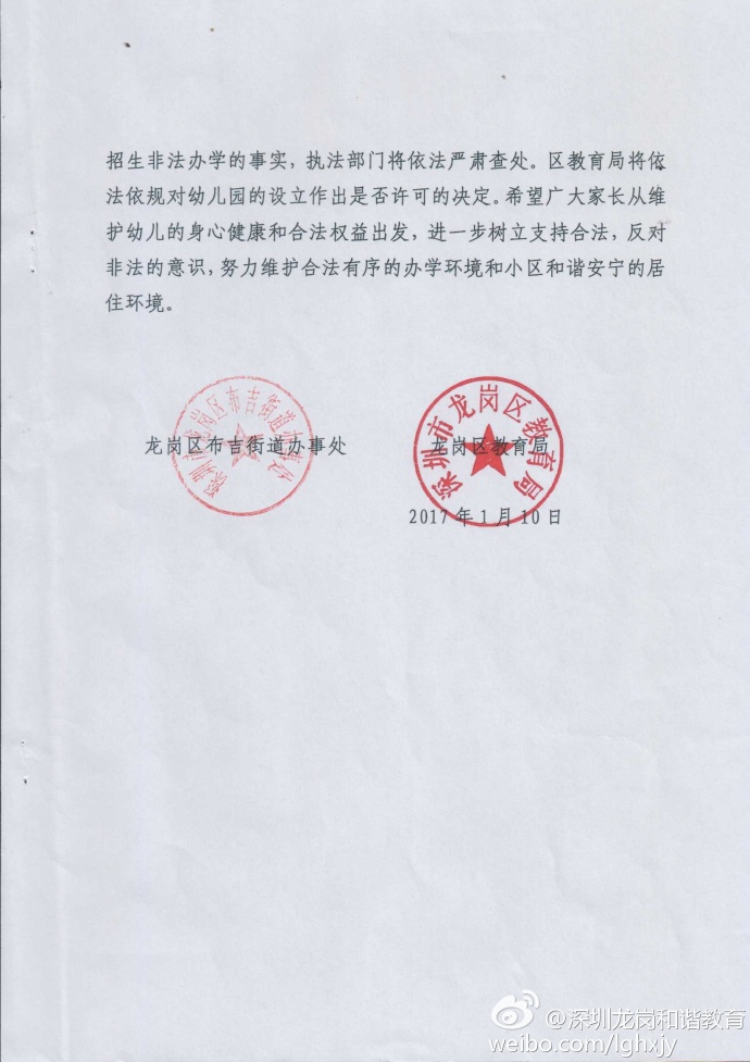 今天記者通過“深圳龍崗和諧教育”的微博看到了深圳龍崗教育局2月16日發(fā)出的情況通報(bào):