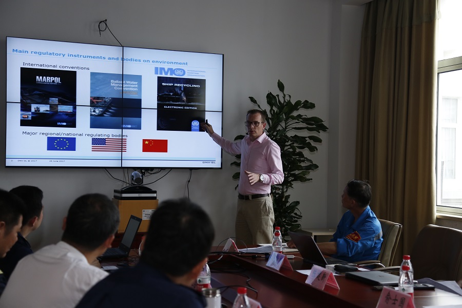 共商會上,DNV-GL船級社安全部經(jīng)理、德國籍專家介紹了歐洲防治船舶水域污染和氮氧化物、硫氧化物排放控制方面的管理經(jīng)驗,CCS上海分社崇明船檢處指導(dǎo)驗船師以及中海長興船廠、江南長興重工等單位的專家代表分別結(jié)合各自單位特點,就船廠、船舶防污染工作進行了經(jīng)驗交流。在互動環(huán)節(jié),各方還重點就船廠修船過程中的鐵砂、油漆等污染物控制、推動技術(shù)標(biāo)準(zhǔn)建立以及在建、試航船舶防污染措施等方面的問題建言獻策,展開熱烈討論,深入交換了意見。