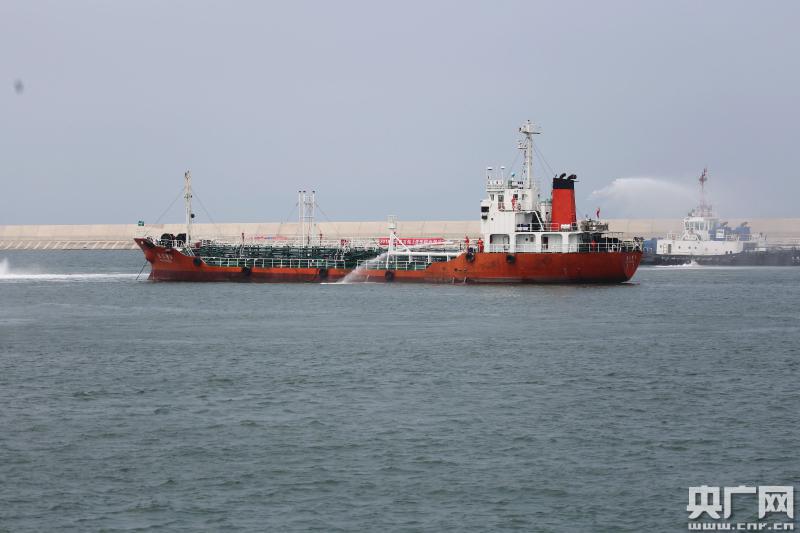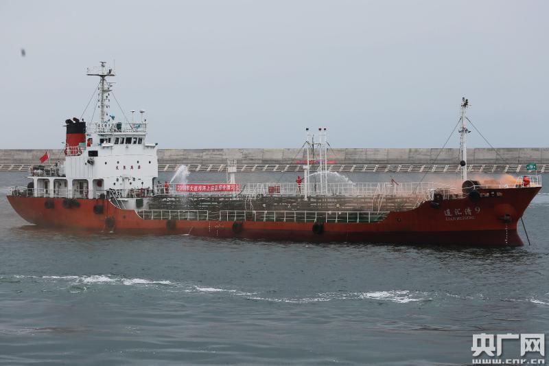 在“液化1”輪向大連市海上搜救中心報(bào)警的急促聲中,演習(xí)正式開始。在與“雜貨1”輪發(fā)生碰撞后,“液化1”輪的船艏冒出滾滾濃煙,船體前部起火,受損情況不明。搜救中心接警后,立即向市政府和遼寧省海上搜救中心報(bào)告,啟動應(yīng)急響應(yīng)程序,協(xié)調(diào)救助力量趕往現(xiàn)場進(jìn)行滅火作業(yè)并指導(dǎo)事故船展開自救。針對貨物的化學(xué)特性,在“連港46輪”“連港47輪”和“連港48輪”輪到達(dá)現(xiàn)場后,立即開啟消防泡沫進(jìn)行滅火作業(yè)。經(jīng)過20分鐘的撲救,火勢已經(jīng)完全撲滅。