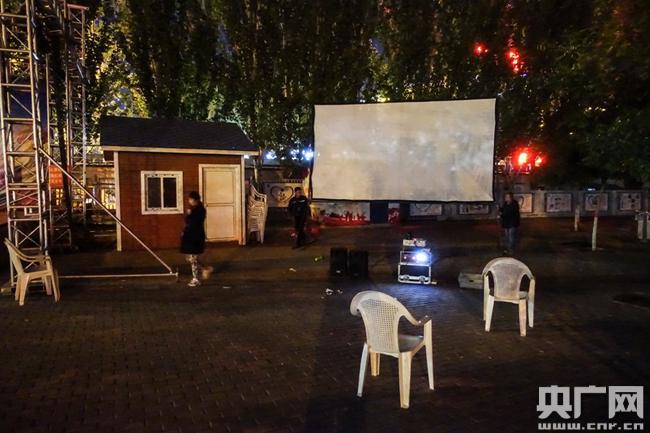 擺放座椅、收放銀幕、調(diào)試設(shè)備……靠著牙齒和左胳膊,5年來,魏文軍已成為一名熟練的放映員。妻子和一些老“影迷”也會(huì)來搭把手裝拆放映設(shè)備。不知不覺中,他已在這里放映了近千場(chǎng)次的公益電影。除了冬天和刮風(fēng)下雨外,一到點(diǎn),這塊銀幕一準(zhǔn)會(huì)閃亮。