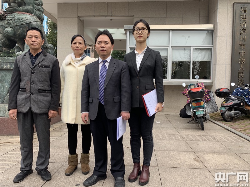 宣判結(jié)束后劉大蔚父母與辯護(hù)律師徐昕、肖之娥合影 央廣網(wǎng)記者 萬存靈攝