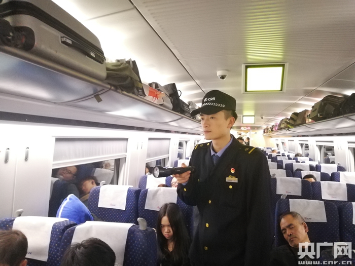 隨車機械師在“紅眼動車”上巡視(央廣網(wǎng)發(fā) 通訊員李國建 攝)