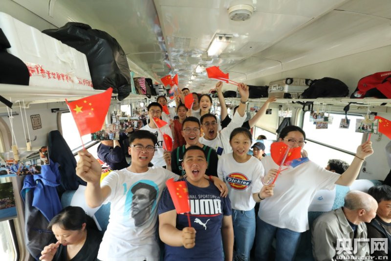 考生在高考專列上合影留念(央廣網(wǎng)記者 喬仁慧 攝)
