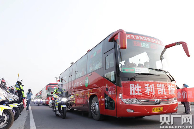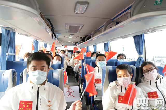 醫(yī)療隊成員集體乘車返回(央廣網(wǎng)記者 褚夫晴 攝)