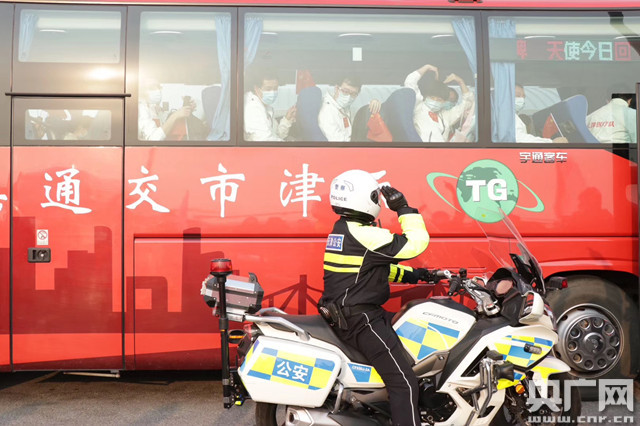 公安人員向醫(yī)療隊敬禮(央廣網(wǎng)記者 褚夫晴 攝)