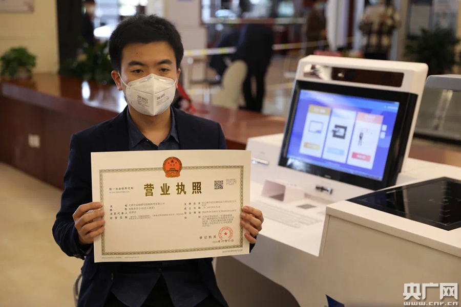 企業(yè)順利拿到天津市首張自助打印的營業(yè)執(zhí)照(央廣網(wǎng)發(fā) 天津東疆保稅港區(qū)供圖)