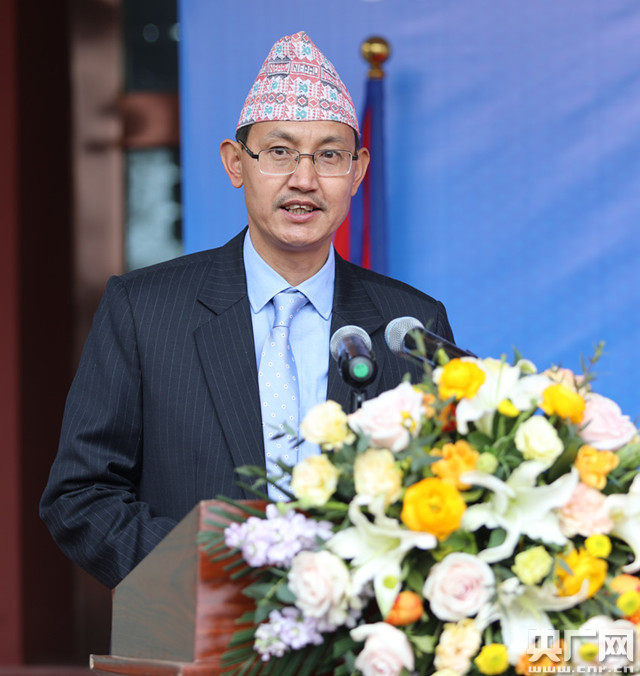 尼泊爾駐拉薩總領(lǐng)事卡爾基正在致詞(央廣網(wǎng)記者 普布次仁 攝)