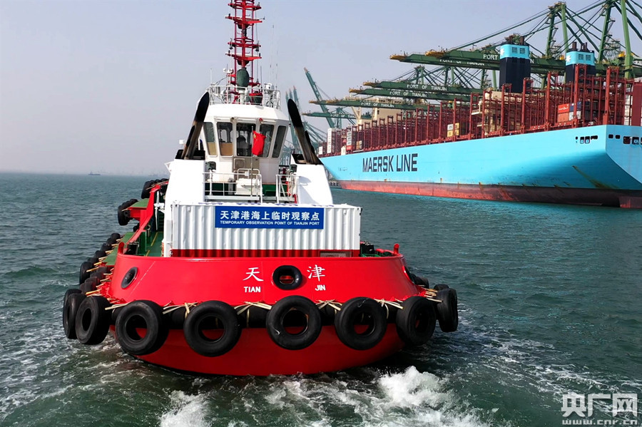 全國首個(gè)拖輪海上臨時(shí)觀察點(diǎn)在天津港投入使用(央廣網(wǎng)發(fā) 天津港供圖)