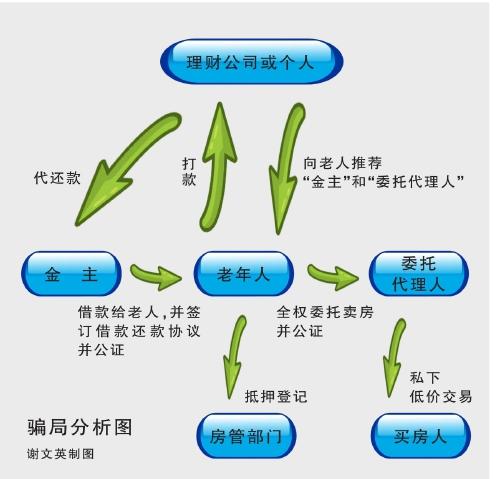 北京老年人維權(quán)工作站律師武婕介紹說,通過對一系列欺詐案件梳理后發(fā)現(xiàn),廣某都是以“澳洲博彩業(yè)”或“以房養(yǎng)老”等項(xiàng)目名義,吸引老年人向其借款或投資,并向老人承諾月息5%或8%的高額回報(bào)。因?yàn)槔夏耆藳]有過多存款,廣某便主動(dòng)介紹中間人阿龍為老年人聯(lián)系金主。阿龍稱,金主借款給老年人,需要將老年人的房產(chǎn)作抵押,但手續(xù)非常簡便,而且不會(huì)有任何風(fēng)險(xiǎn)。廣某也稱,不僅沒有風(fēng)險(xiǎn),而且還款義務(wù)由其承擔(dān),老年人在整個(gè)過程中,只需要協(xié)助簽一些文件即可,剩下的就是坐等拿錢。
