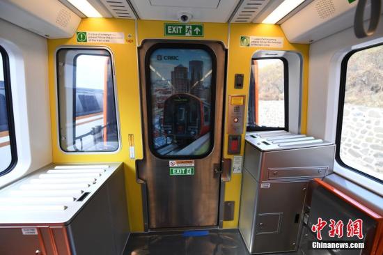 10月16日,由中車長春軌道客車股份有限公司研制的首批美國波士頓橙線地鐵車在長春順利下線,預(yù)計(jì)在今年12月份運(yùn)抵美國。中新社記者 張瑤 攝