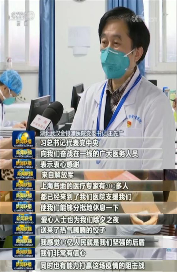 央視網(wǎng)消息(新聞聯(lián)播):疫情就是命令,防控就是責(zé)任。習(xí)近平總書(shū)記在1月25日中共中央政治局常務(wù)委員會(huì)會(huì)議上的重要講話,發(fā)出了打贏疫情防控阻擊戰(zhàn)的戰(zhàn)斗號(hào)召,在寒冬里為億萬(wàn)人民帶來(lái)信心與力量。目前,各地方各部門爭(zhēng)分奪秒救治感染患者,強(qiáng)化防控措施落實(shí)。廣大干部群眾眾志成城,全力以赴抗擊疫情。