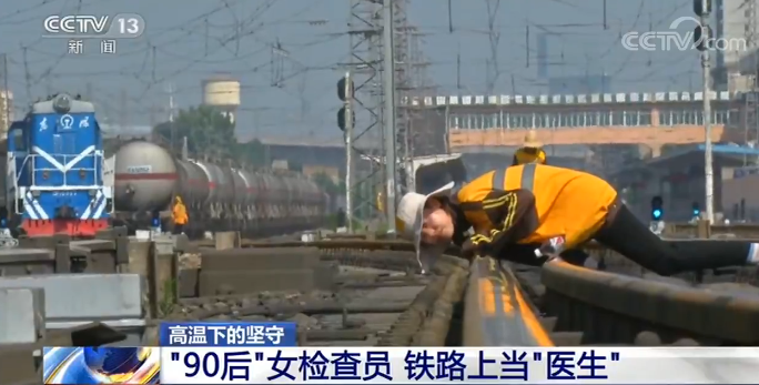 央視網(wǎng)消息:在陜西西安有這樣一群“90后”的姑娘,她們的工作又要挨曬又要負重,最考驗人的莫過于,她們要趴在50多℃的鋼軌上給鐵路做檢查。
