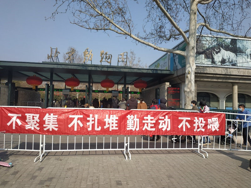 北京動物園南門,游客在測溫驗碼,確認健康綠碼后進入園區(qū)。今年2月11日至2月17日,北京動物園等市屬10家公園在做好防控措施的前提下向市民免費開放,實行限量、預(yù)約、錯峰游園。北京動物園提示,入園游覽請文明游園,科學(xué)佩戴口罩,保持安全社交距離,不扎堆、不聚集。進入室內(nèi)空間時以及在室外間距不足1米時須佩戴口罩。