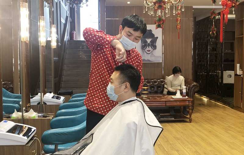 我國目前的新冠肺炎防控成果來之不易,離不開每個人的辛勤付出。在春節(jié)期間北京市的一家理發(fā)店內(nèi),顧客和發(fā)型師嚴格遵守防疫要求,在洗頭、剪發(fā)的全過程中,始終佩戴口罩。每位發(fā)型師身前的桌子上,都設(shè)有為剪刀等工具消毒的機器,做到“每客一換”。顧客的等候區(qū)也刻意留出單獨區(qū)域,與他人之間保持有效的安全距離。