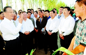 8月28日至29日,中共中央政治局常委、國務(wù)院總理溫家寶在國家有關(guān)部委負責人和自治區(qū)領(lǐng)導的陪同下,專程趕往受災(zāi)較嚴重的赤峰市敖漢旗、通遼市奈曼旗檢查指導抗旱減災(zāi)工作。