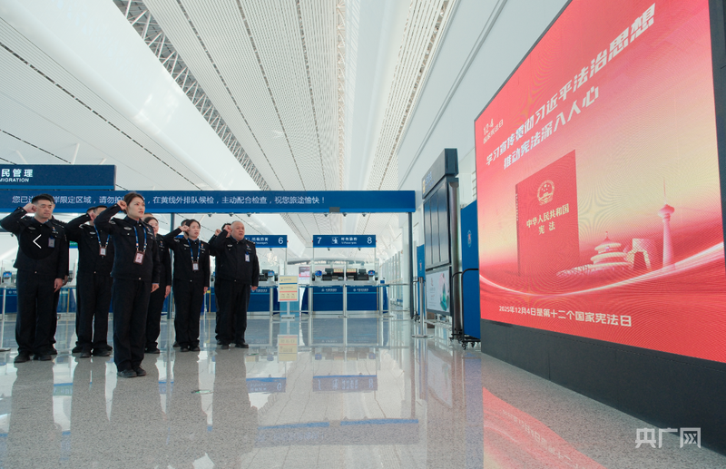 山東濟南出入境邊防檢查站執(zhí)勤民警在國門一線開展宣誓活動,切實履行法定職責,全力維護憲法權(quán)威。