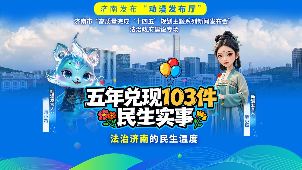 “動漫發(fā)布廳”來啦,動漫發(fā)言人清小照泉小趵攜手為您匯報十四五期間法治濟南建設成就。