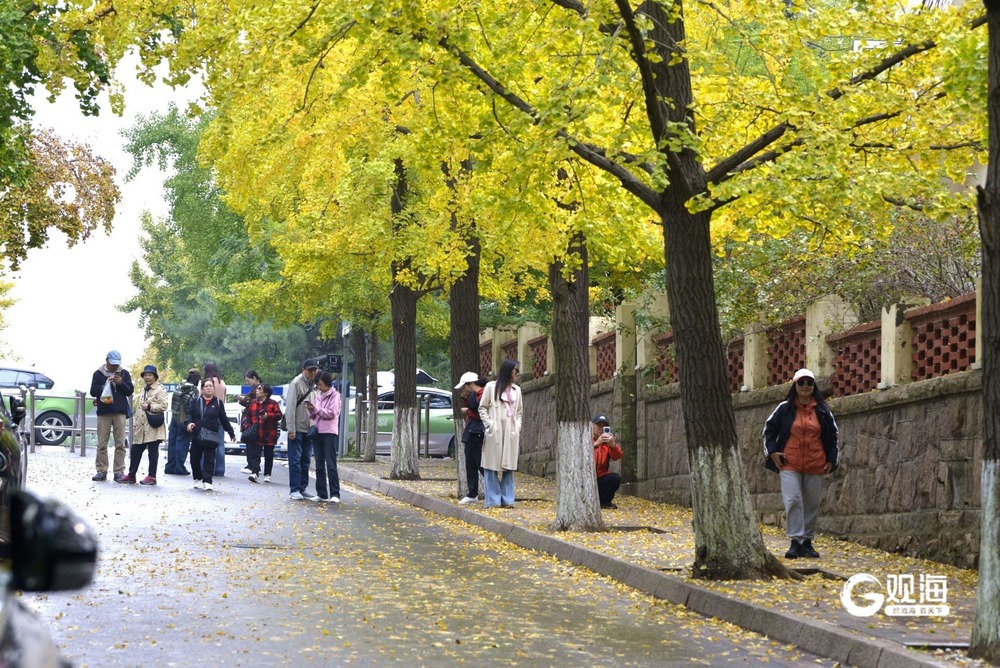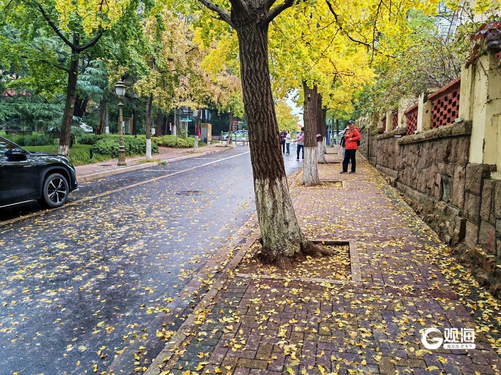 雨后的八大關(guān),以銀杏為筆、秋雨為墨,繪就出最濃的深秋畫卷。