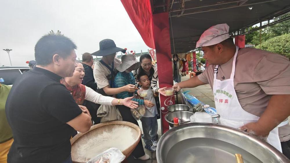 這是一場(chǎng)文化搭臺(tái)、經(jīng)濟(jì)唱戲的有益嘗試。每次大賽現(xiàn)場(chǎng),都會(huì)同步推出“海洋大集”和“好物推薦官”等環(huán)節(jié),剪紙、面塑、福山大面、蓬萊小面、煙臺(tái)蘋果、秋月梨等非遺好物和特色農(nóng)產(chǎn)品,借力村歌大賽的巨大流量,得到有力的推廣。觀眾品嘗著家鄉(xiāng)的美食,聽(tīng)著家鄉(xiāng)的歌曲,在朋友圈和短視頻平臺(tái),頻頻刷屏。萊陽(yáng)市依托村歌大賽主會(huì)場(chǎng),設(shè)置了好物推薦、休閑娛樂(lè)等區(qū)域,打造了多業(yè)態(tài)消費(fèi)場(chǎng)景,拉動(dòng)預(yù)制菜、文創(chuàng)產(chǎn)品、特色美食等商品的夜間銷售額同比增長(zhǎng)40%。
