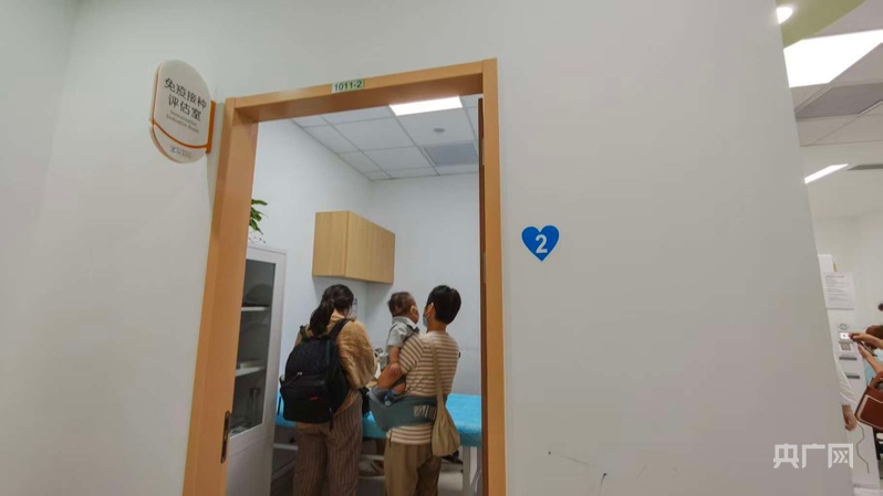 有家長帶著孩子進行呼吸道合胞病毒單克隆抗體注射液(RSV單抗)接種評估(央廣網(wǎng)記者 林馥榆 攝)