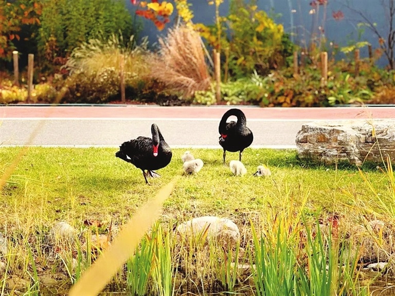 近日,太原植物園又一對恩愛的黑天鵝夫婦誕下愛的結晶。今年10月以來,園內已經迎來三對黑天鵝“爸爸媽媽”。(劉曉亮)