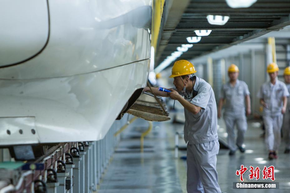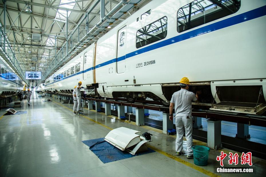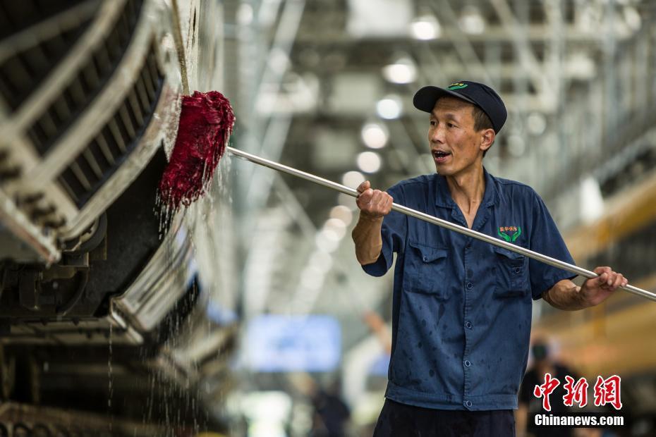 連日來,全國多地迎來高溫天氣,西安最高溫度達到40攝氏度以上。在西安鐵路局西安動車段檢修庫內(nèi),酷熱的天氣,再加上一列列動車供電運轉(zhuǎn)產(chǎn)生的熱氣流,讓密閉的車庫異常悶熱,動車組檢修師的崗位就在這密不透風的“桑拿房”里。安動車段要求職工上崗前必須服用藿香正氣水,并在庫內(nèi)安排了冰鎮(zhèn)酸梅湯飲用點,以防中暑。高溫天氣,面對科技含量高、運行速度快、標準要求嚴的動車組,這些年輕的動車檢修師們經(jīng)常需要承受更大的壓力,用更多的汗水確保動車組安全始發(fā)、安全運行。王曙天 攝