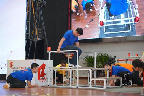 而對(duì)于承辦方,如此全新的嘗試,新的問(wèn)題也是不斷涌現(xiàn),沒(méi)有現(xiàn)成的加載裝置做加載測(cè)試就是其中最大的一項(xiàng)大挑戰(zhàn),怎么辦?自主研制!“我們團(tuán)隊(duì)從2017年5月就開(kāi)始著手進(jìn)行了這項(xiàng)工作的準(zhǔn)備,一幫老師帶著一幫學(xué)生,在全校啟動(dòng)了跨系跨學(xué)科的大合作攻關(guān),第一臺(tái)出爐后,我們后續(xù)又進(jìn)行了多次的工藝突破、改良,小到用材的選擇、每一項(xiàng)指標(biāo)的精度與靈敏度調(diào)適等。”加載裝置研制工作負(fù)責(zé)人沈家棟老師談起了裝置制作的過(guò)程,現(xiàn)下,大賽的成功舉辦終于可以讓他們一直緊繃的弦放松了,他有感而發(fā):“同濟(jì)浙院雖然是一所新興的獨(dú)立學(xué)院,雖然此前未曾申辦過(guò)省級(jí)學(xué)科競(jìng)賽,但是,學(xué)校很拼,教師也很努力,這次大賽的成功舉辦就是一個(gè)最好的見(jiàn)證和考驗(yàn)。我想,從這次成功舉辦之后,在承辦學(xué)科競(jìng)賽而且是A類(lèi)學(xué)科競(jìng)賽的高校目錄里,我們就不再是‘0’了,二是‘1’了,有起步點(diǎn)了,相信以后會(huì)有越來(lái)越多這樣的‘1’!保ㄍㄓ崋T:曹嘉燕/文 陶博勇/圖)